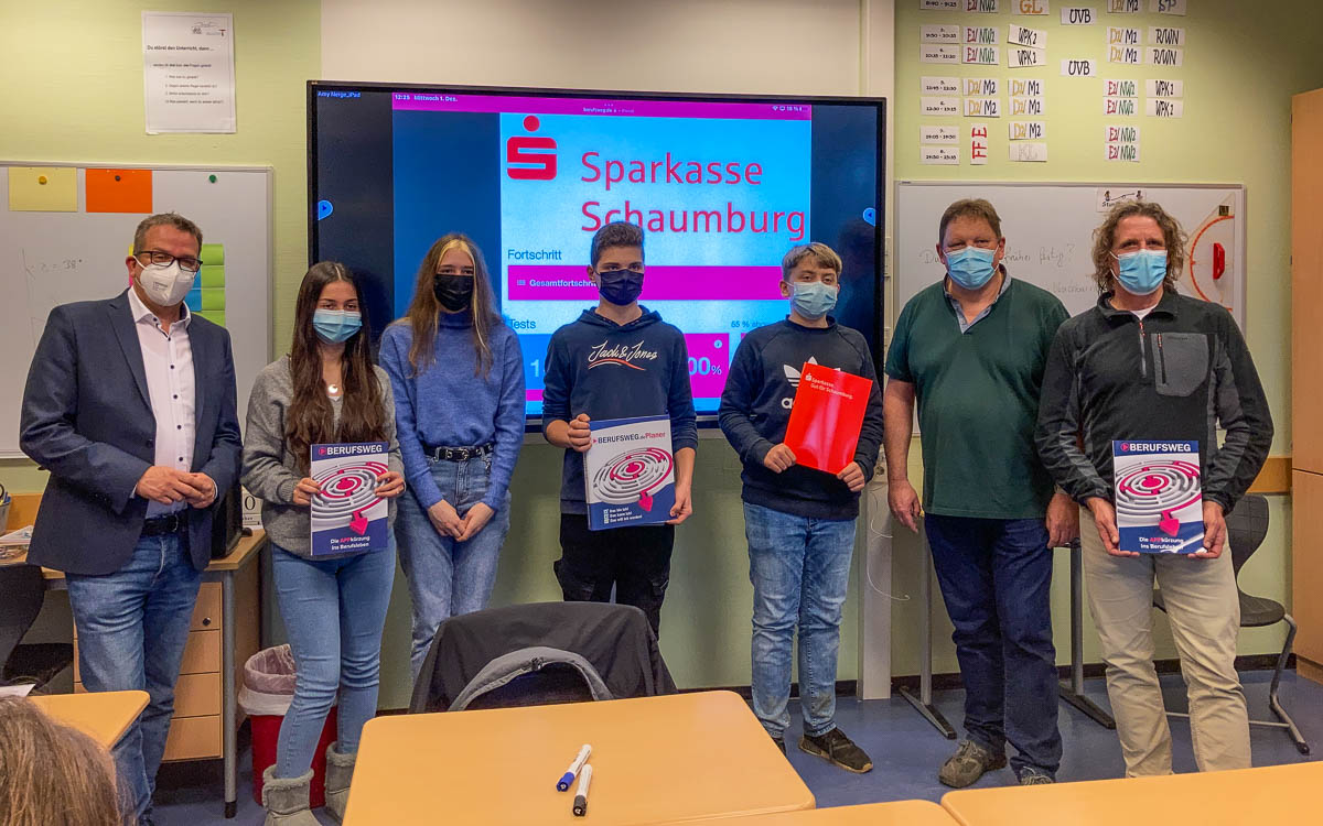 Die Berufsweg-App wurde bereits an über 100 Schulen in Niedersachsen eingeführt. Acht Schulen im Landkreis sind bereits dabei. So zum Beispiel auch alle fünf integrierten Gesamtschulen im Landkreis Schaumburg. Mit ihnen auch die IGS Helpsen, wo jüngst das Einstiegsseminar mit den Schülern stattfand. Die Kosten für das Seminar und die Berufsweg-Begleitbücher für die Schüler und Lehrkräfte übernimmt die Sparkasse Schaumburg und führt damit die nachhaltige Förderung an den Schulen fort.