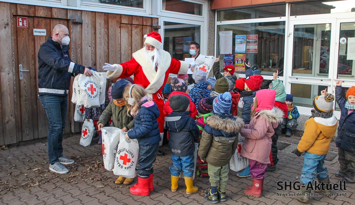 (Bückeburg) Große Augen bei den Bückeburger Kindergartenkindern, als das DRK gemeinsam mit dem Weihnachtsmann vorfährt und mit Geschenken bepackt die Kleinen besucht.