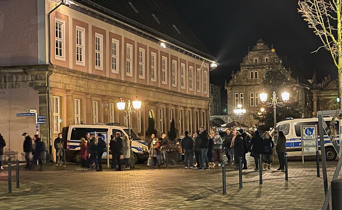 (Landkreis / Nienburg) Am Montag, den 27. Dezember, kamen zwischen 17:00 Uhr und 21:00 Uhr in den Landkreisen Nienburg und Schaumburg erneut zahlreiche Menschen in den Innenstädten von Nienburg, Stadthagen, Bückeburg, Rinteln, Uchte und Bad Nenndorf in Bezug auf die aktuelle Corona-Situation zusammen.