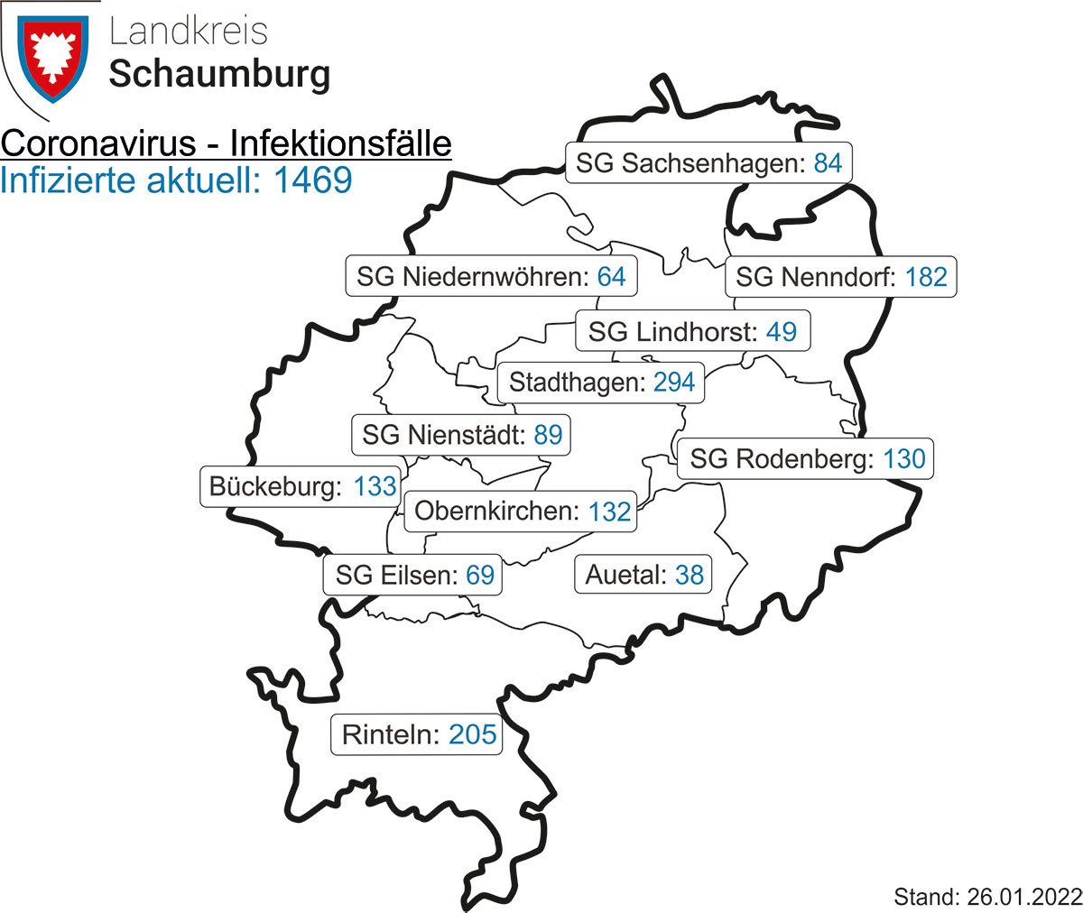 Corona-Fälle im Landkreis Schaumburg aktuell: 1.469 (seit gestern 170 neue Positivtestungen)