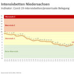 - der landesweite prozentuale Anteil COVID-19 Erkrankter an der Intensivbettenbelegung weiterhin bei 4,7 %