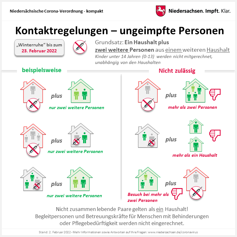 (Niedersachsen) Die Corona-Verordnung wird erneut angepasst, die neuen Regeln in Niedersachsen gelten bis zum 23. Februar.