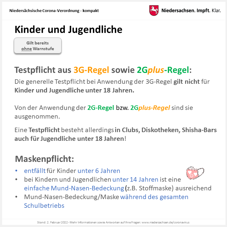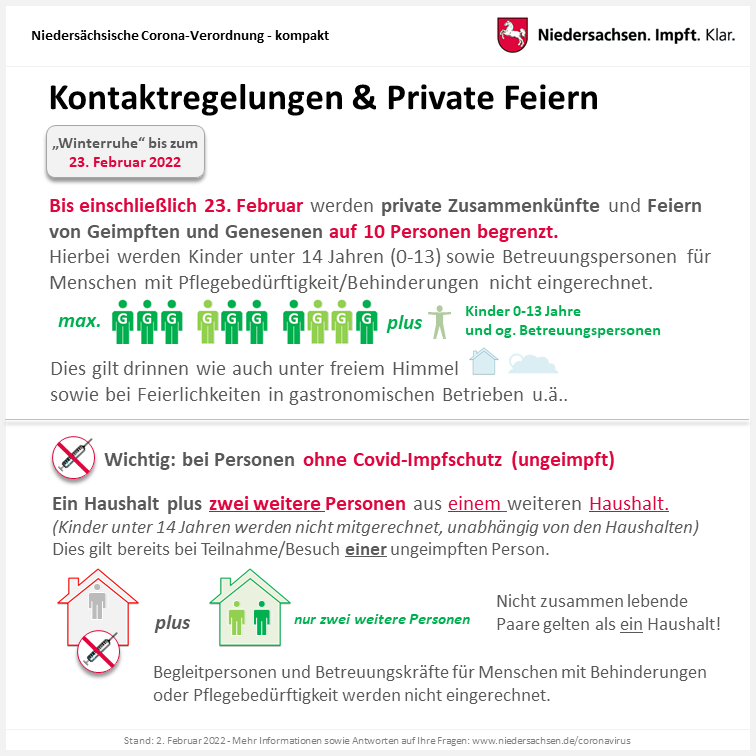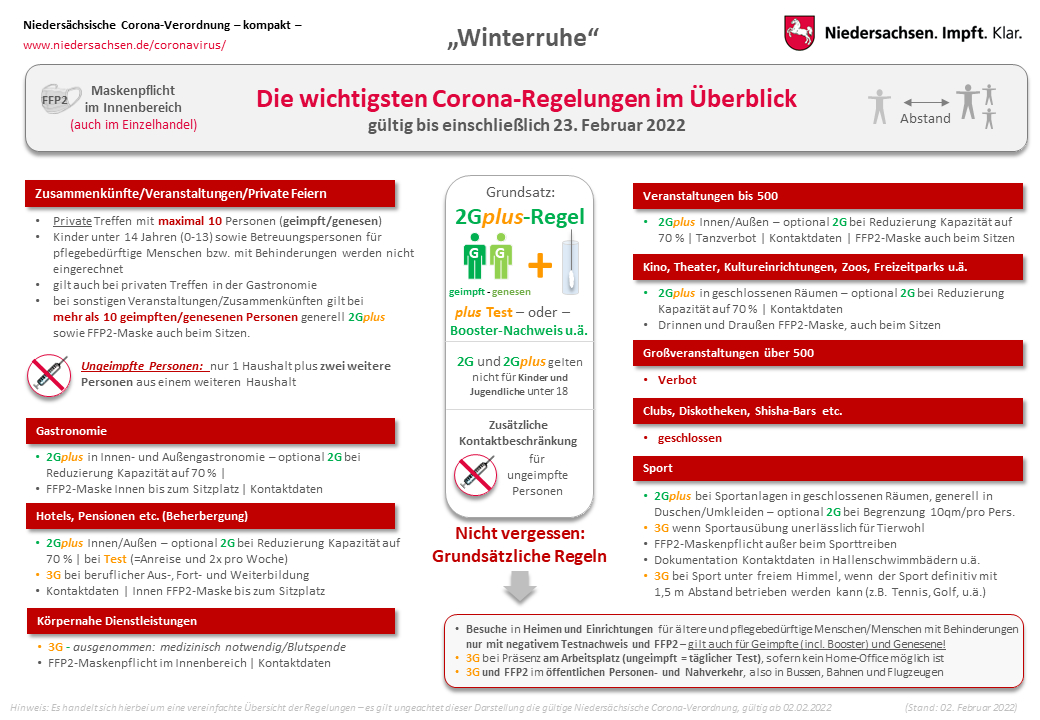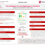 Die „Winterruhe“ wird weiter verlängert (Warnstufe 3, unabhängig von den tatsächlichen Werten) und im Wesentlichen bleibt es bei den bestehenden Kontaktbeschränkungen und der Maskenpflicht. In einigen Bereichen hat das Land jedoch Änderungen beschlossen.