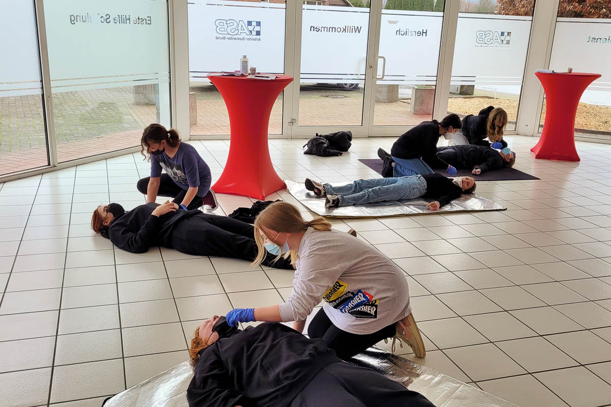 Die Aufgaben der Schulsanitäter liegen aber nicht nur bei der Durchführung der Ersten Hilfe Maßnahmen. Unter anderem gehören die Betreuung des Sanitätsraums und der dort gelagerten Materialien oder die Begleitung unterschiedlichster Schulveranstaltungen auch zu den Aufgaben der „Schulsanis“. Mit seinen Ausbildungen für den Schulsanitätsdienst leistet der ASB unter seinem Motto „Wir helfen hier und jetzt“ einen wertvollen Beitrag, um die Erste Hilfe fest im Wissen der Schüler zu verankern.
