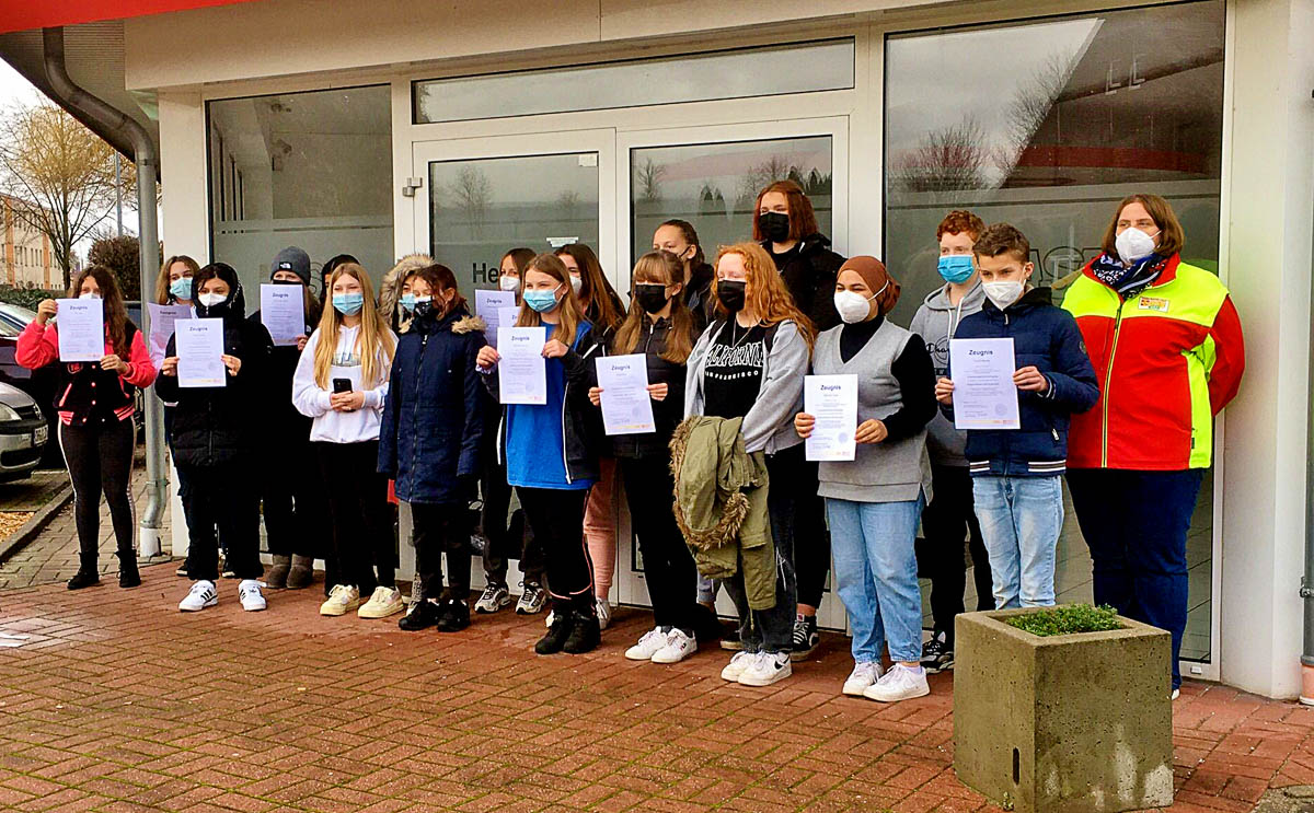 So war es dann auch kein Wunder, das alle Teilnehmer am Ende ihre Prüfungen bestanden haben und ihre Urkunden in Empfang nehmen konnten. Die IGS Helpsen freut sich über neue 13 Schulsanitäter und die Oberschule Bückeburg hat fünf neue Helfer, die den Schulbetrieb für alle Schüler wieder sicherer machen werden.