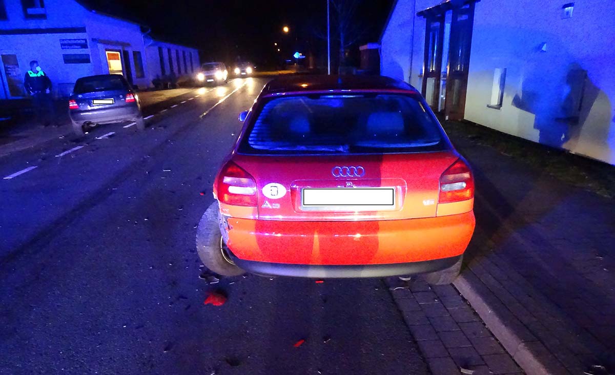 Während der Fahrt kollidierte er bei gerader Strecke mit einem am rechten Straßenrand geparkten PKW.
