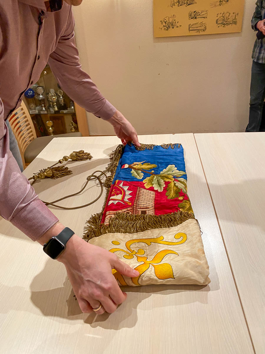 Die Anwesenden waren überrascht über den sehr guten Zustand der 93 Jahre alten Fahne und deren hervorragender Qualität.