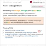 FFP2-Maske innen, außer bei Behandlungen, bei denen das Gesicht nicht verdeckt werden darf.