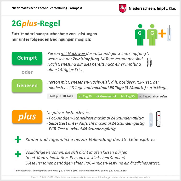 2G-plus im Innen- und Außenbereich, auch unter 18 Jahren. Drinnen FFP2-Maskenpflicht bis zum Sitzplatz.
