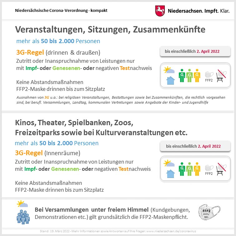 Keine Kontaktbeschränkungen, bei mehr als 50 Personen gilt „3G“.