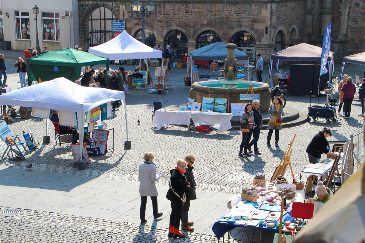 Nach der Winterpause zeigten Künstler und Besucher großes Interesse am Kunstmarkt auf dem Bückeburger Marktplatz