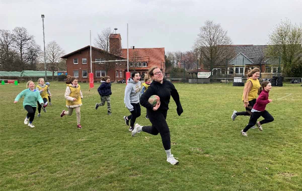 Am ersten Tag durften die jungen Teilnehmerinnen beim „Royal RFC Schaumburg“ das Rugbyspielen ausprobieren. Nachdem sie lernen konnten, wie richtig gepasst und getackled wird, zeigten sie ihr neu erlerntes Können in einer Partie Touch-Rugby. Selbst die äußerst unwirtlichen Wetterverhältnisse hielten die taffen Mädchen nicht davon ab, mit viel Freude und Elan dabei zu sein.