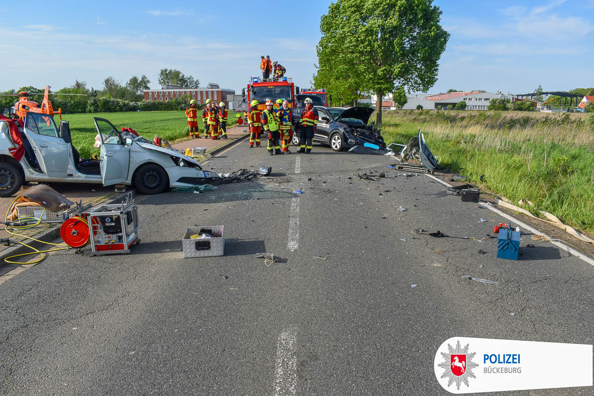 Durch den massiven Zusammenstoß der beiden Fahrzeuge musste der Coppenbrügger mit schweren Verletzungen aus seinem Skoda von den eingesetzten Feuerwehrleuten aus Bückeburg, Bergdorf und Meinsen-Warber herausgeschnitten werden. Der 36-jährige wurde mit dem Rettungshubschrauber Christoph 13 in ein Klinikum nach Bielefeld geflogen.