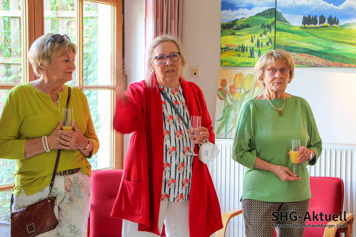 Schulze Heuerling erläuterte den Besuchern, dass es für viele Künstler schwer war, die Pandemie durchzustehen und sich auch manche Stile im Zuge dessen verändert hätten. Nun solle es aber wieder bergauf gehen, daher sind alle Interessierten eingeladen, bei der Gruppe, die sich immer montags von 10 bis 12 Uhr in der Begegnungsstätte trifft, vorbeizuschauen und einfach mal mitzumachen: „Farben und Pinsel sind immer da, also kommt vorbei!“.