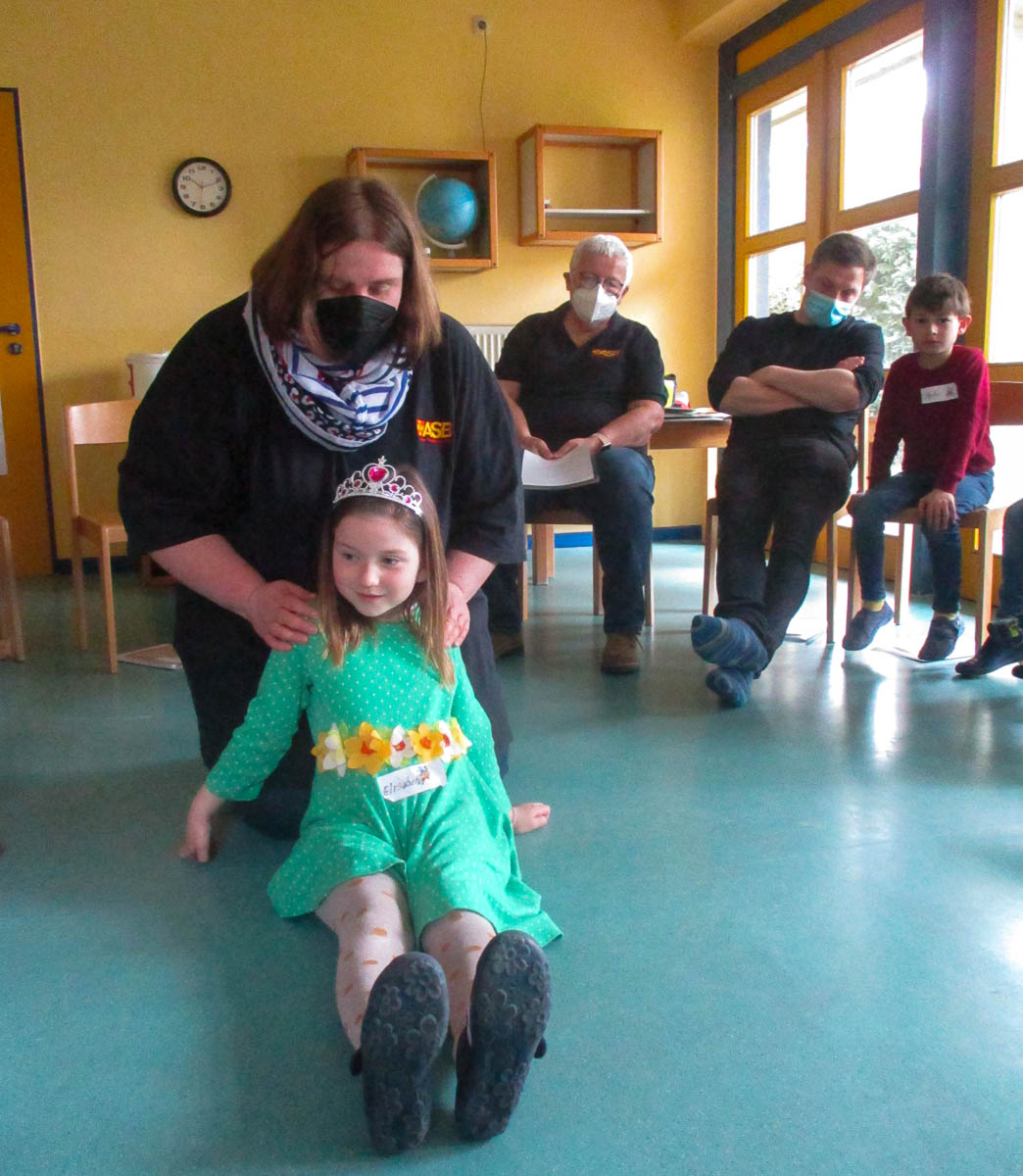 Darüber hinaus gab es jetzt noch eine besondere Aktion. Nadine Brockhoff und Hildegard von Thadden, Ausbilderinnen des ASB haben die Kinder spielerisch und altersentsprechend mit dem Thema Erste-Hilfe vertraut gemacht. Über richtiges Händewaschen, kleine Schnellverbände, Notrufabsetzen und Verhalten bei Nasenbluten haben sie alles Wichtige erfragen und erlernen können.