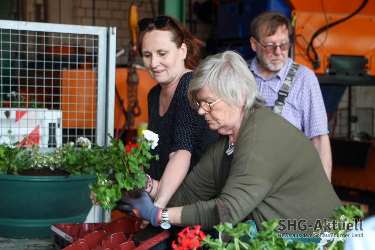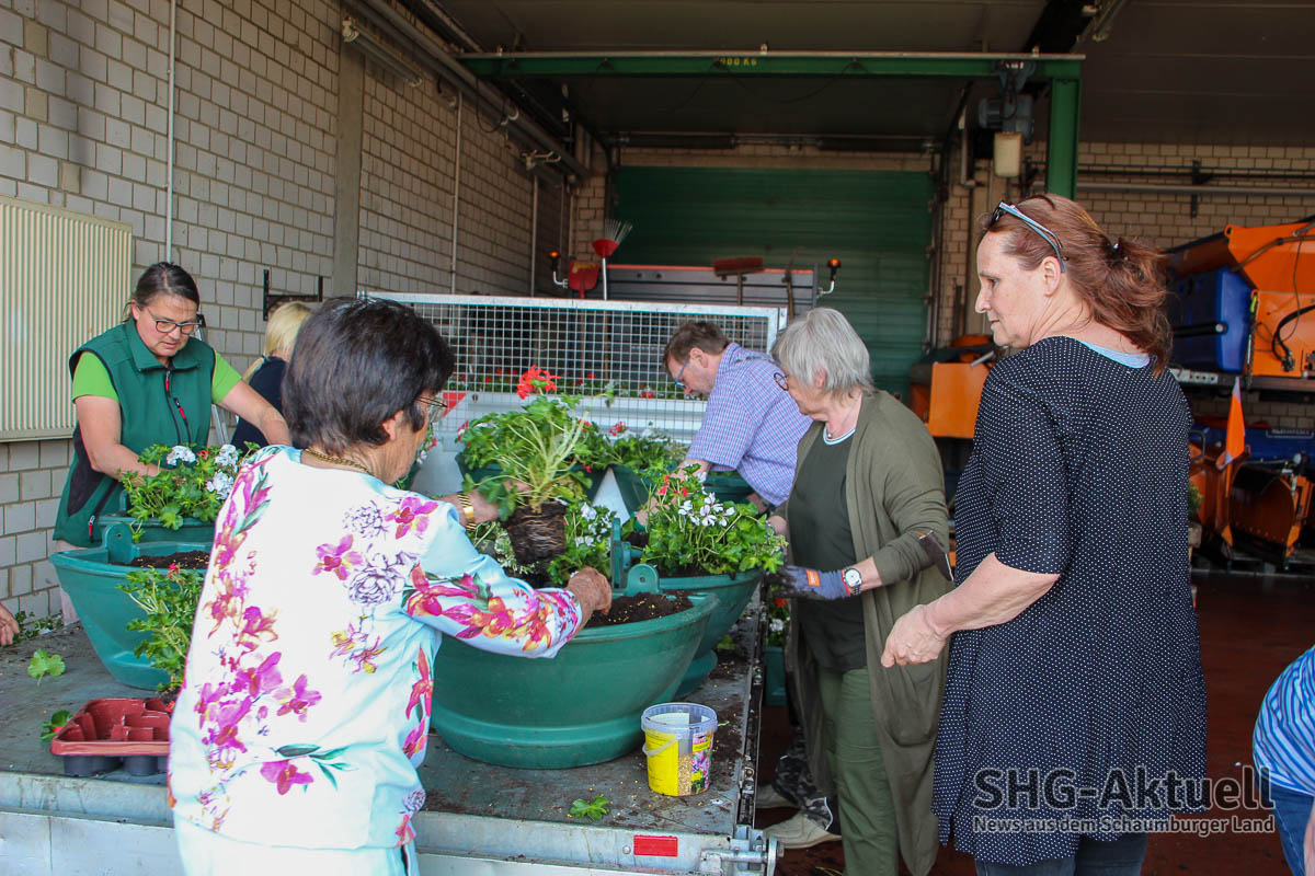 (Obernkirchen) Inzwischen zum 21. Mal haben Ehrenamtliche gemeinsam, unter Anleitung der Experten von „Der schöne Garten“ und Blumenhaus Scholz, insgesamt 51 Blumenkörbe auf dem Bauhofgelände für die Obernkirchener Innenstadt bepflanzt.