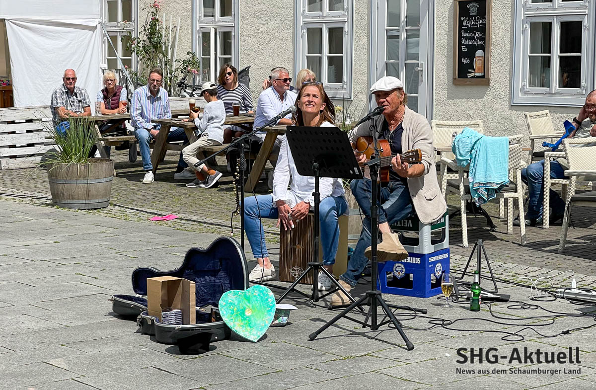 Angenehme Überraschung am Rande für Ciotti, der die Fäden von „Open Art“ zusammenhält: Kurzfristig schaute sein langjähriger Freund und international agierender Musiker José Lopez in Bückeburg vorbei, packte zusammen mit Steffi Agbodjan die Gitarre und das Mikrofon aus und verlieh mit einem spontanen Live-Konzert dem sonnengeküssten Stadtzentrum etwas spanisches Flair.