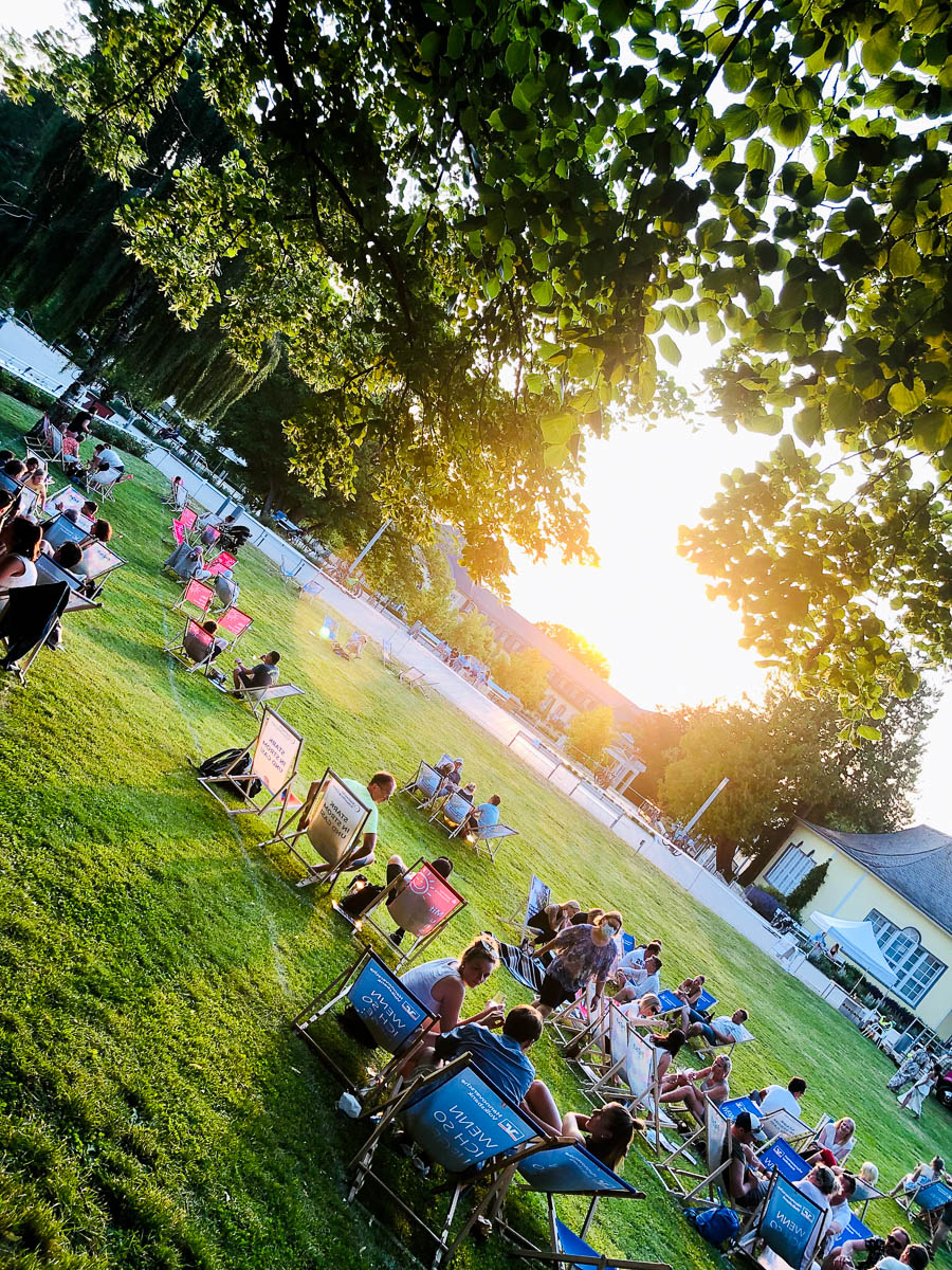 400 Plätze können in diesem Jahr auf der Schlösschenwiese eingenommen werden. Beim Einlass gibt die KurT Bad Nenndorf 240 Strandliegen aus, die für entspanntes Flair sorgen. Hier gilt: Wer zuerst kommt, chillt zuerst, denn der Kartenkauf berechtigt zum Eintritt, es ergibt sich jedoch kein Anspruch auf die Nutzung einer Strandliege. Ihre Sitzgelegenheiten von Decke bis Sitzkissen bringen die Gäste daher einfach selbst mit.