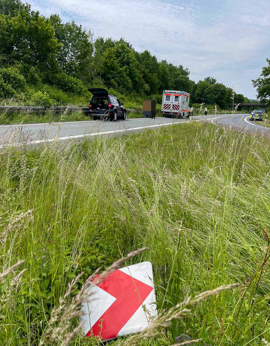 Im Bereich der Auffahrt kam er von der Fahrbahn ab und kollidierte nach Überfahren einer Rasenfläche mit der Mittelschutzplanke der B65. Der Fahrer wurde leichtverletzt in ein Krankenhaus gebracht, seine 49-jährige Beifahrerin blieb unverletzt. Die Ermittlungen zur genauen Unfallursache dauern an.