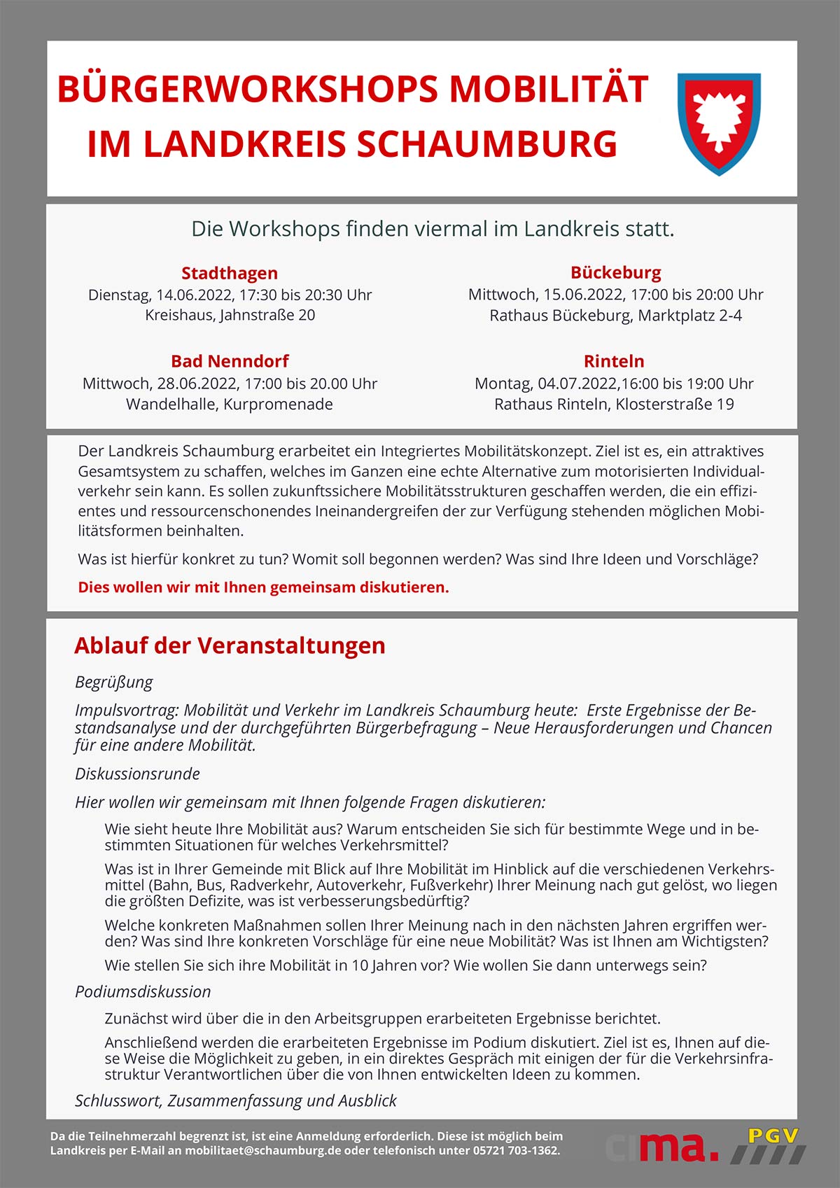 (Landkreis) Bis Anfang des Jahres 2023 erarbeitet der Landkreis Schaumburg ein neues Mobilitätskonzept. Im Anschluss an die Mobilitätsumfrage werden nun vier Bürgerworkshops angeboten, bei denen jeweils bis zu 40 Bürger mit den Planern über verschiedene Aspekte der Mobilität diskutieren können.