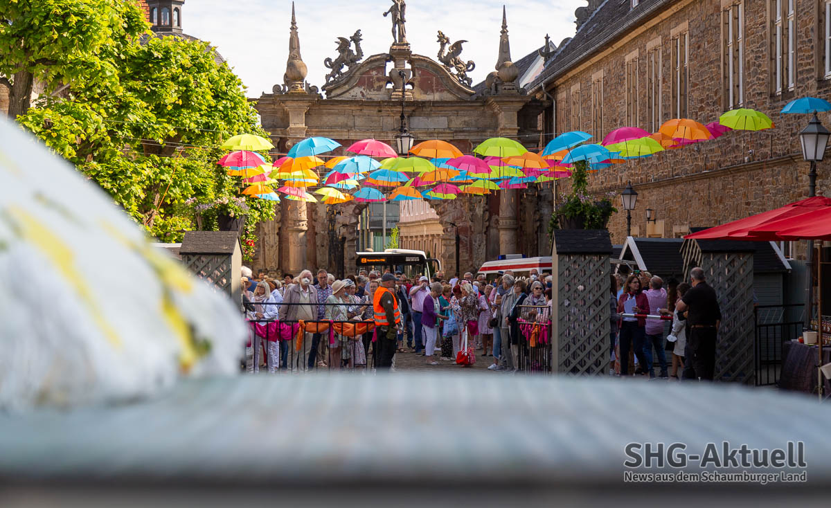 Die Landpartie auf Schloss Bückeburg lädt noch bis zum Sonntag, 19. Juni, zu einem Besuch ein. Die Öffnungszeiten sind täglich von 10 bis 19 Uhr (am Sonntag bis 18 Uhr). Tickets sind online und vor Ort erhältlich. Parkplätze sind auf dem Gelände „Am Hasengarten“ vorhanden und im Eintrittspreis enthalten. Von dort fährt ein kostenloser Shuttle-Service zum Veranstaltungsgelände. Einen Shuttle-Service vom Bahnhof zum Schloss gibt es nicht.