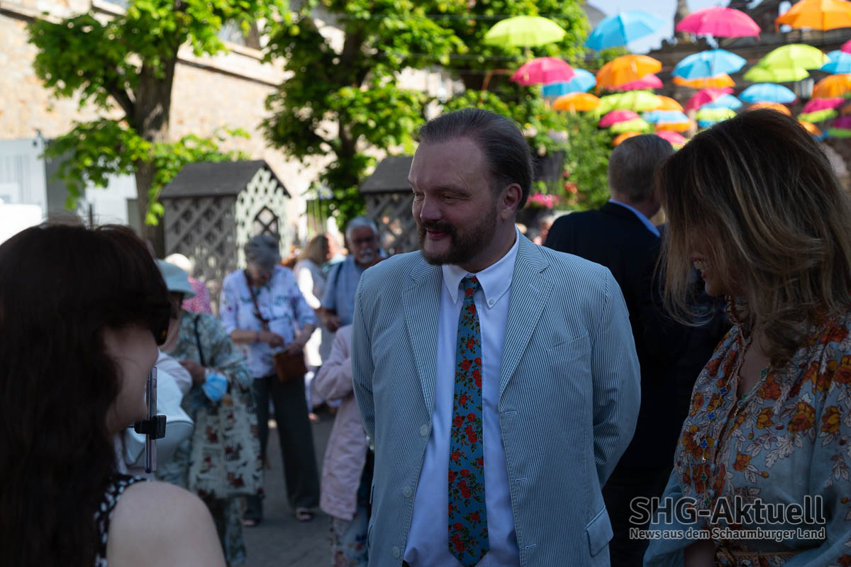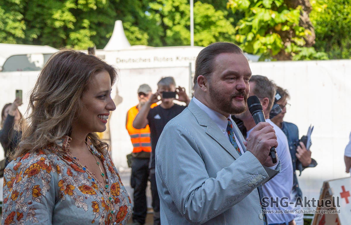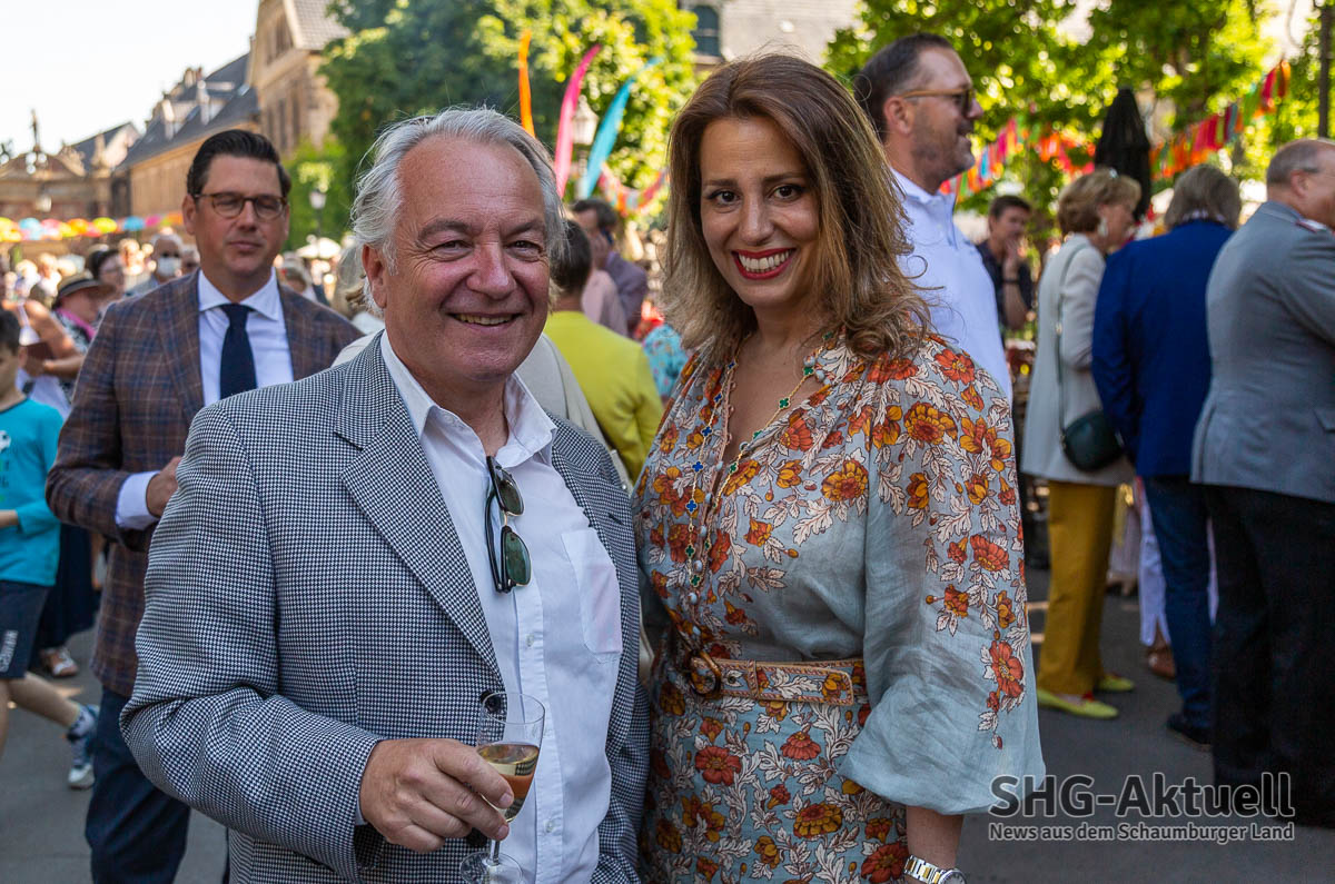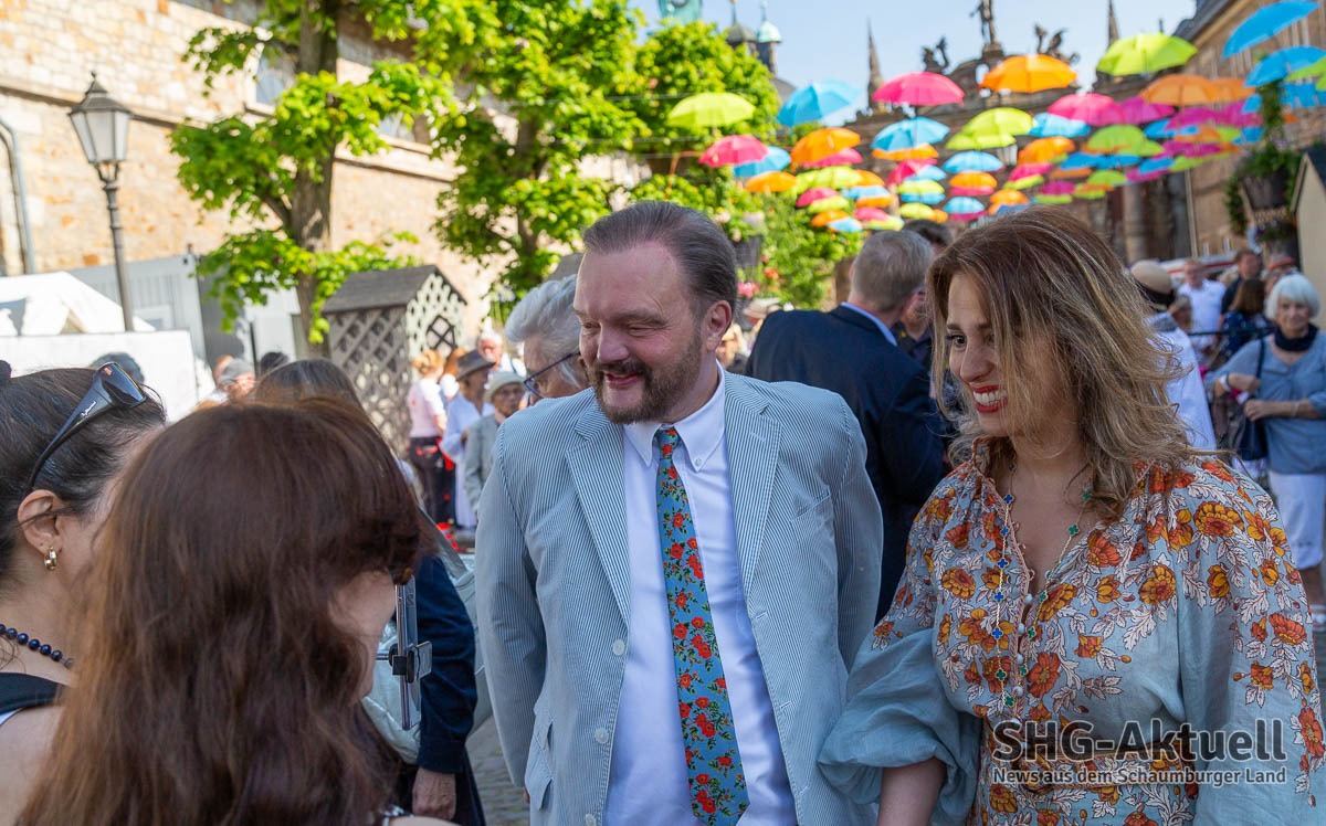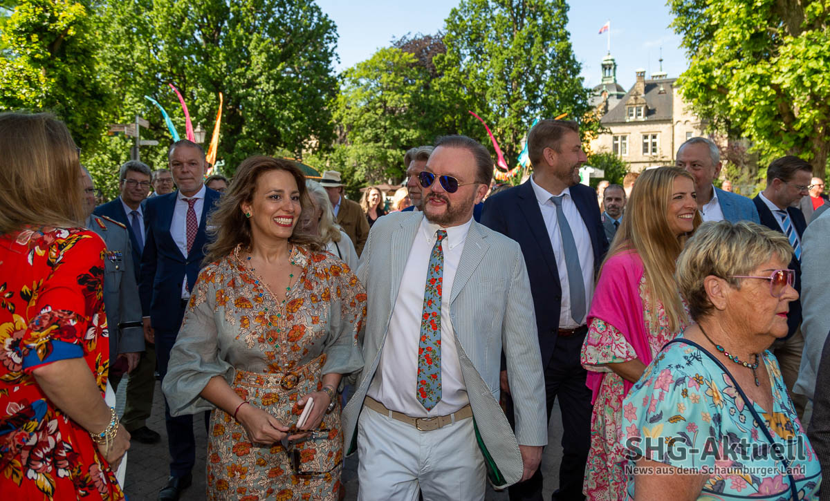 (Bückeburg) Die 22. Landpartie auf Schloss Bückeburg unter dem Motto „Savoir Vivre“ ist heute bei bestem Wetter eröffnet worden. Schlossherr Alexander Fürst zu Schaumburg-Lippe begrüßte die Menschenmenge am Schlosstor und hieß sie herzlich willkommen, während seine Ehefrau, Mahkameh Fürstin zu Schaumburg-Lippe, das symbolische Band in den traditionellen Farben Blau, Weiß und Rot durchschnitt und den Weg für die Besucher freigab.