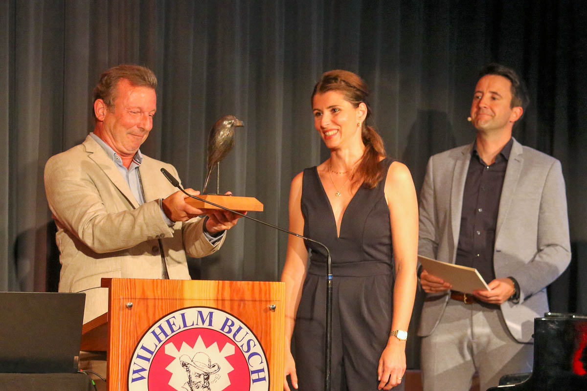 Viel Applaus von den etwa 200 Veranstaltungsgästen ernteten auch der Pianist Roman Rofalski und der Pantomime-Künstler „Herr Niels“, die das Rahmenprogramm des Abends gestalteten. Der Wilhelm-Busch-Preis wie der Hans-Huckebein-Preis gestiftet von der Schaumburger Landschaft, der Stiftung der Sparkasse Schaumburg und den Schaumburger Nachrichten. Er ist mit 10.000 Euro dotiert. Wegen Corona fand die Übergabe des Preises erst 2022 statt.