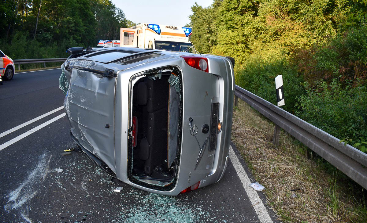 Nach den ersten polizeilichen Ermittlungen ist der 21-jährige Fahrer des Opel aus bislang nicht bekannten Gründen nach rechts von der Fahrbahn abgekommen und überfuhr den Grünstreifen. Anschließend brach das Fahrzeug unkontrolliert nach links aus und geriet auf die Gegenfahrbahn, wo der Wagen gegen die Leitplanke stieß, sich überschlug und auf die linke Fahrzeugseite kippte bzw. noch einige Meter in Schräglage über die Fahrbahn rutschte.