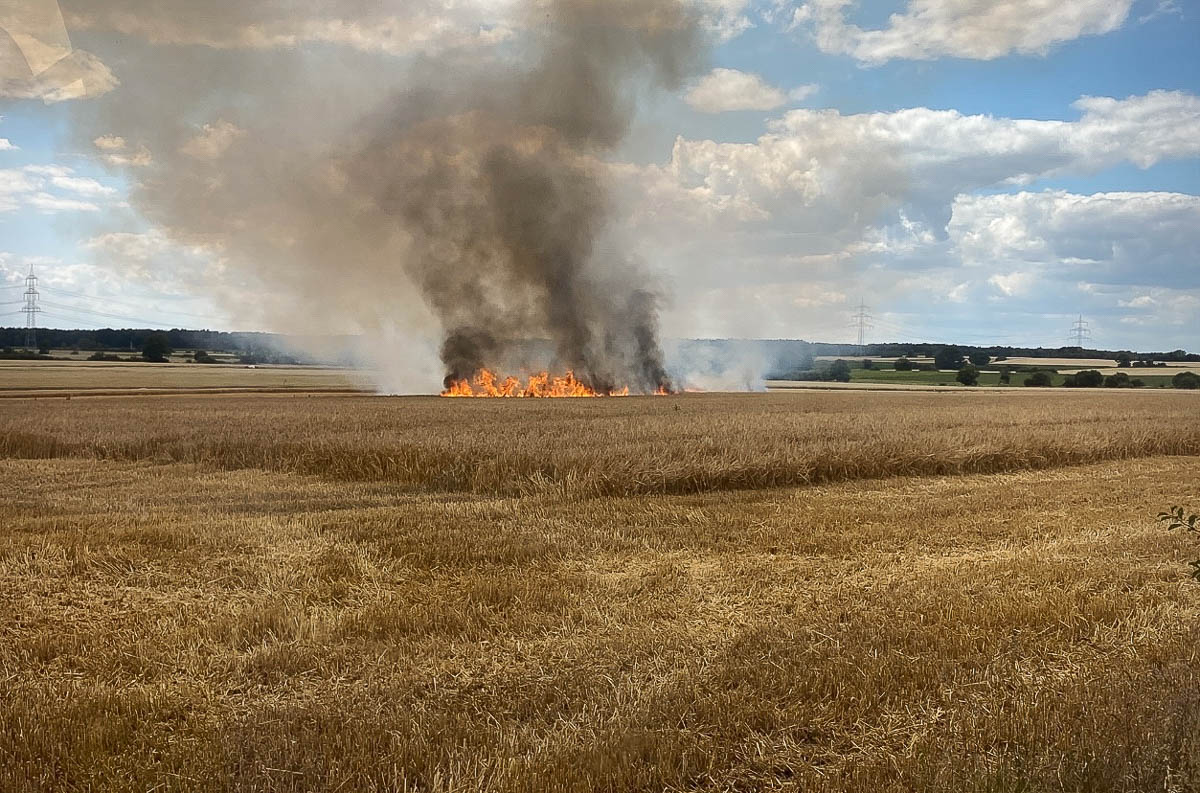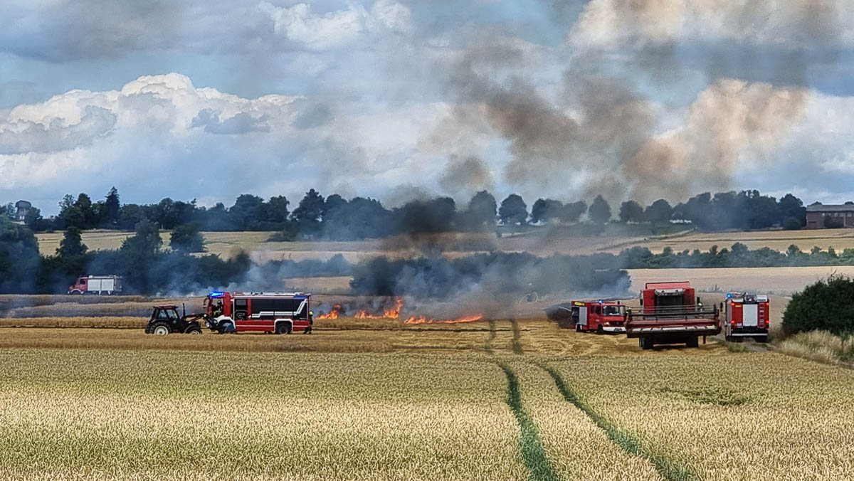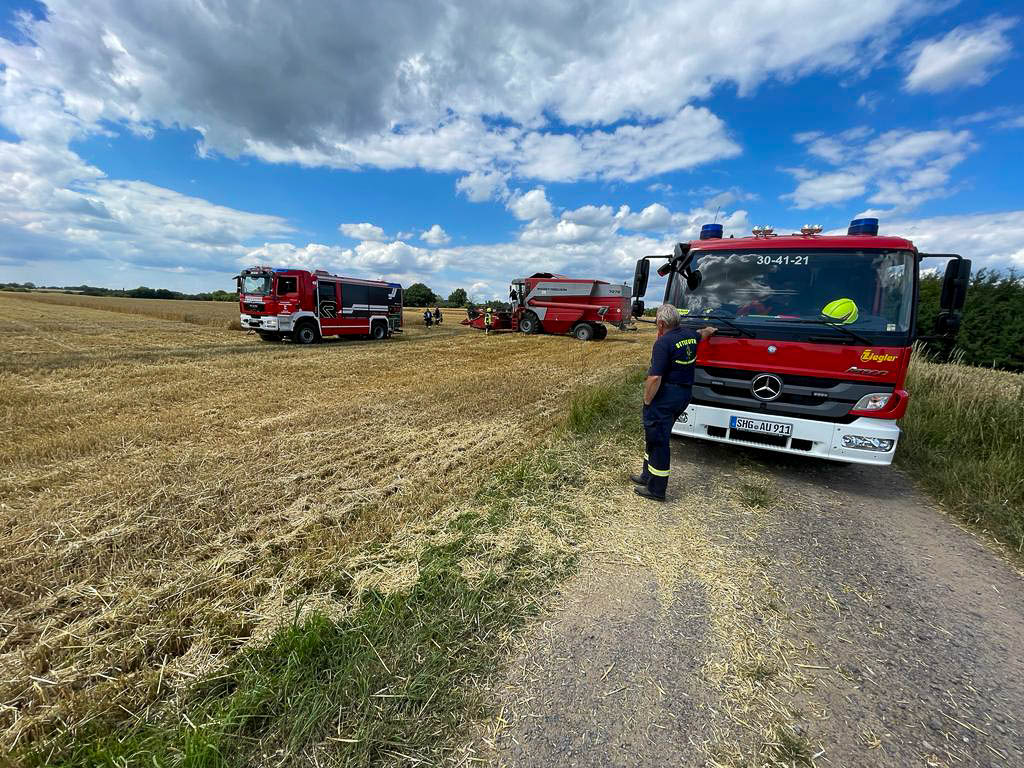 Nach rund einer Stunde waren auch die letzten Brandnester abgelöscht und die 40 Einsatzkräfte konnten einrücken. Insgesamt war eine Fläche von etwa einem Hektar Getreide betroffen. Durch das umsichtige verhalten der Landwirte kam es zu keinem weiteren Brandschaden an der Erntemaschine, berichtet die Feuerwehr. (pr/Fotos: Feuerwehr)