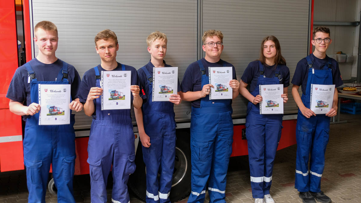 Im Bericht der Jugendwehr ging Jugendfeuerwehrwart Stefan Wolf noch mal auf die nicht immer einfache Zeit der letzten zweieinhalb Jahre ein. Trotz mehrerer Lockdowns wurde immer versucht, den Kontakt mit den Jugendlichen zu halten. Zu Anfang wurde auf erarbeitete Schulungsvideos zurückgegriffen und später um ein Onlineangebot an Diensten für die Jugendlichen ergänzt. Die Onlineangebote umfassten z.B. Knotenkunde, Gerätekunde, Spiele und gemeinsames Kochen. Wann immer es möglich war, wurde in den Präsenzdienst gewechselt. Dort sind mit Sicherheit die zwei Übernachtungswochenenden in den Herbstferien, eine Brandschutzunterweisung im Senioren- und Pflegeheim Kaschube in Hagenburg oder die Ausbildung und Abnahme von Jugendflammen zu erwähnen.