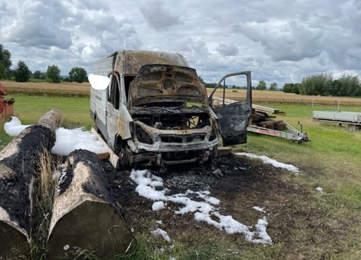 (Nienstädt/Hespe) Ein abgestellter Transporter der Marke Iveco ist gestern gegen 20.30 Uhr auf einem Privatgrundstück in Hespe nahezu komplett ausgebrannt.