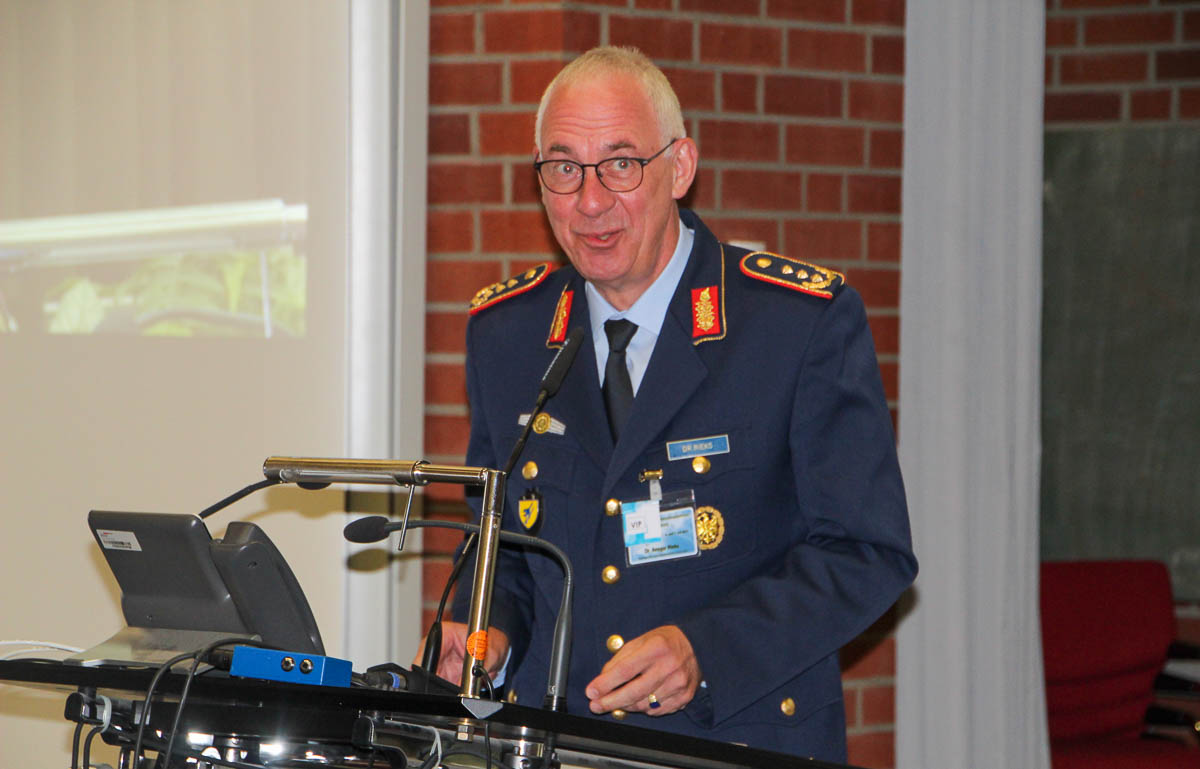Dr. Ansgar Riecks, Generalleutnant Stellvertreter des Inspekteurs der Luftwaffe, stellte klar: „Der Blick geht nach vorne“. Wie wichtig heute Hubschrauber sind und wo sie überall eingesetzt werden, werde immer sichtbarer, unter anderem bei Flut- und Brandkatastrophen. Dennoch seien die Aufgaben im Landes- und Bundesverteidigungsfeld essentiell: „In der aktuellen Situation ist Gefahr drin. Der Fokus muss darauf gelegt werden, neue Hubschrauber zu beschaffen und die Interoperabilität besser zu gewährleisten. Unter anderem arbeiten wir mit Hochdruck am Übergang von der CH53 auf die CH47“.