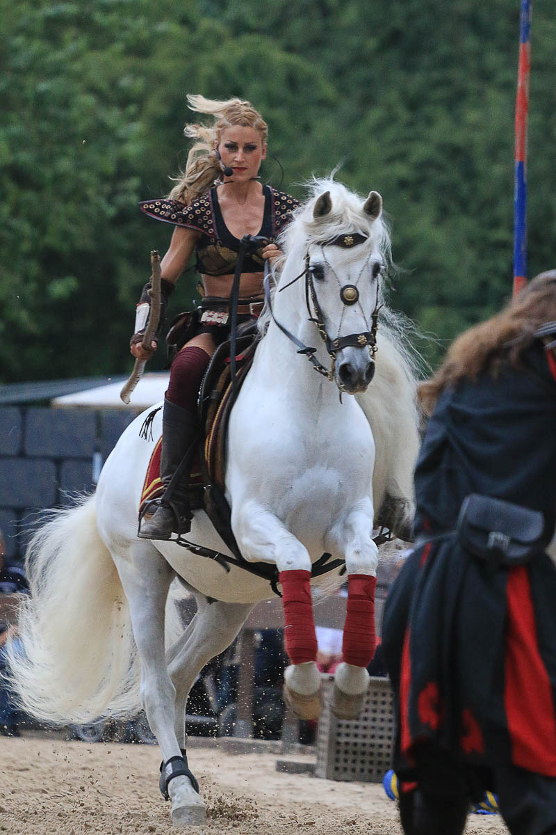 Auf den Kampfplätzen finden täglich mehrmals Turniere der Ritter zu Pferde und der Fußtruppen statt, und auf dem Platz unterwegs sind die Seifenblasenartisten von Nebenbeisorgenfrei sowie der besonders bei Kindern beliebte Raptorex-Saurier. An den Samstagen erleben die Gäste den schaurigen Pestumzug der Heerlager und die große Feuershow von Danse Infernale.