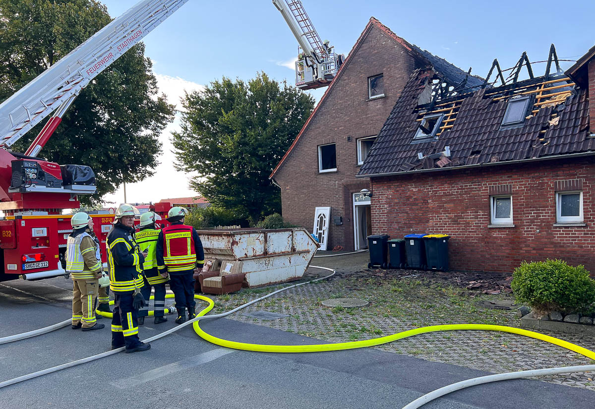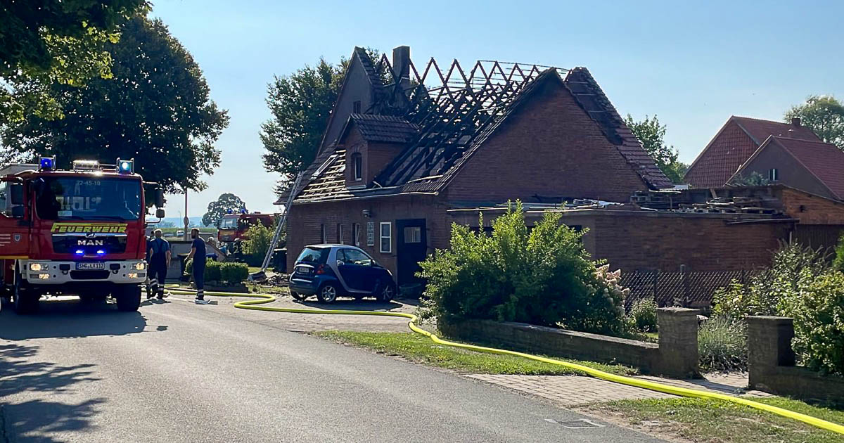 (Hespe) Am 14. August wurden um 5.53 Uhr die Feuerwehren Hespe, Schierneichen, Stemmen-Levesen, Tallensen-Echtorf, Kirchhorsten, Helpsen, Seggebruch sowie die Hubrettungsbühne der Feuerwehr Stadthagen mit dem Stichwort „Feuer Gebäude Personen in Gefahr“ nach Hespe alarmiert.