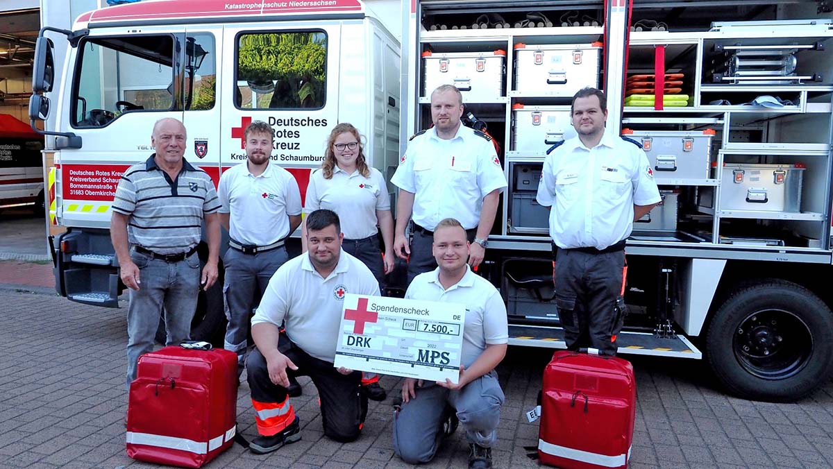 (Landkreis/Bückeburg) Die Kreisbereitschaft des Roten Kreuzes in Schaumburg dankt den MPS-Veranstaltern für deren Spende in Höhe von 7.500 Euro. Das Geld kommt dem DRK Einsatzzug Schaumburg zugute. Der symbolische Scheck wurde jetzt in Obernkirchen an Mitglieder des Roten Kreuzes übergeben.