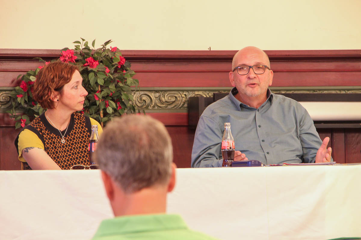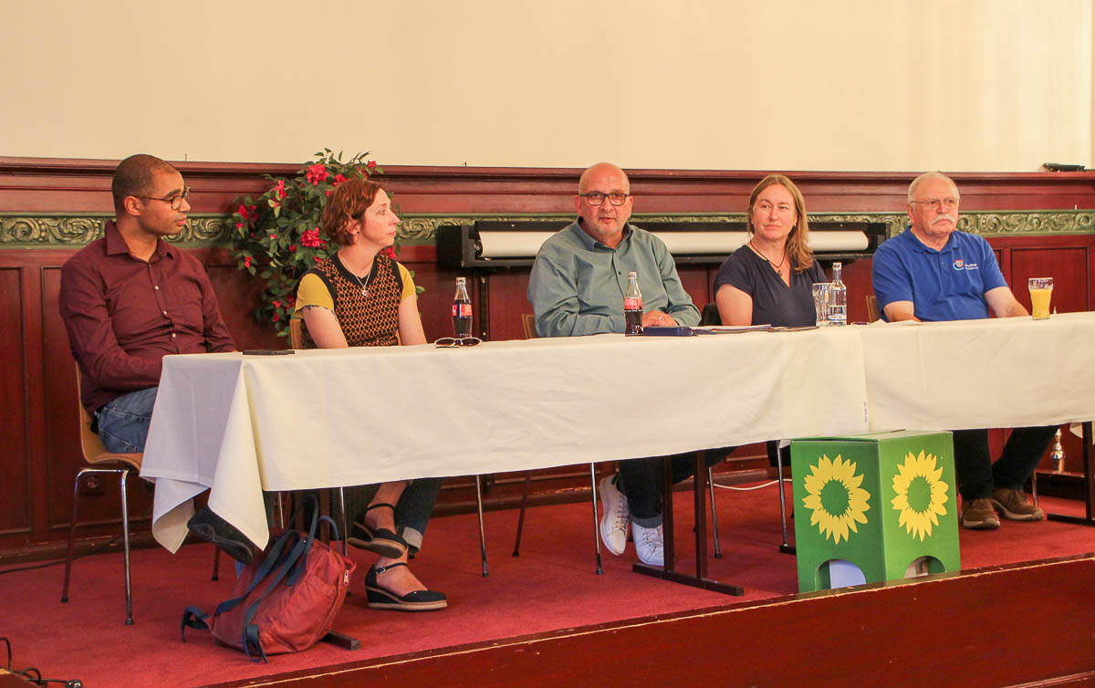 Inga Siemann und Martin Leuchtmann begrüßten im Namen der Bückeburger Grünenfraktion die Gäste. Landesabgeordneter Schulz-Hendel startete mit „vielen verpassten Chancen in der Politik“. Dass das Verkehrsministerium weiter aufs Auto setze, um Menschen zu verbinden, mag er nicht weiter kommentieren: „Nicht jeder kann sich ein Auto leisten“. Vielmehr habe unter anderem das Neun-Euro-Ticket bewiesen, „dass, wenn wir gestalterischen Willen zeigen, wir in kurzer Zeit eine übergreifende Tarifstruktur schaffen können“. Mit einer Milliarde Fahrten habe nun glücklicherweise auch die FDP eingesehen, dass es ein Anschlussticket geben muss.