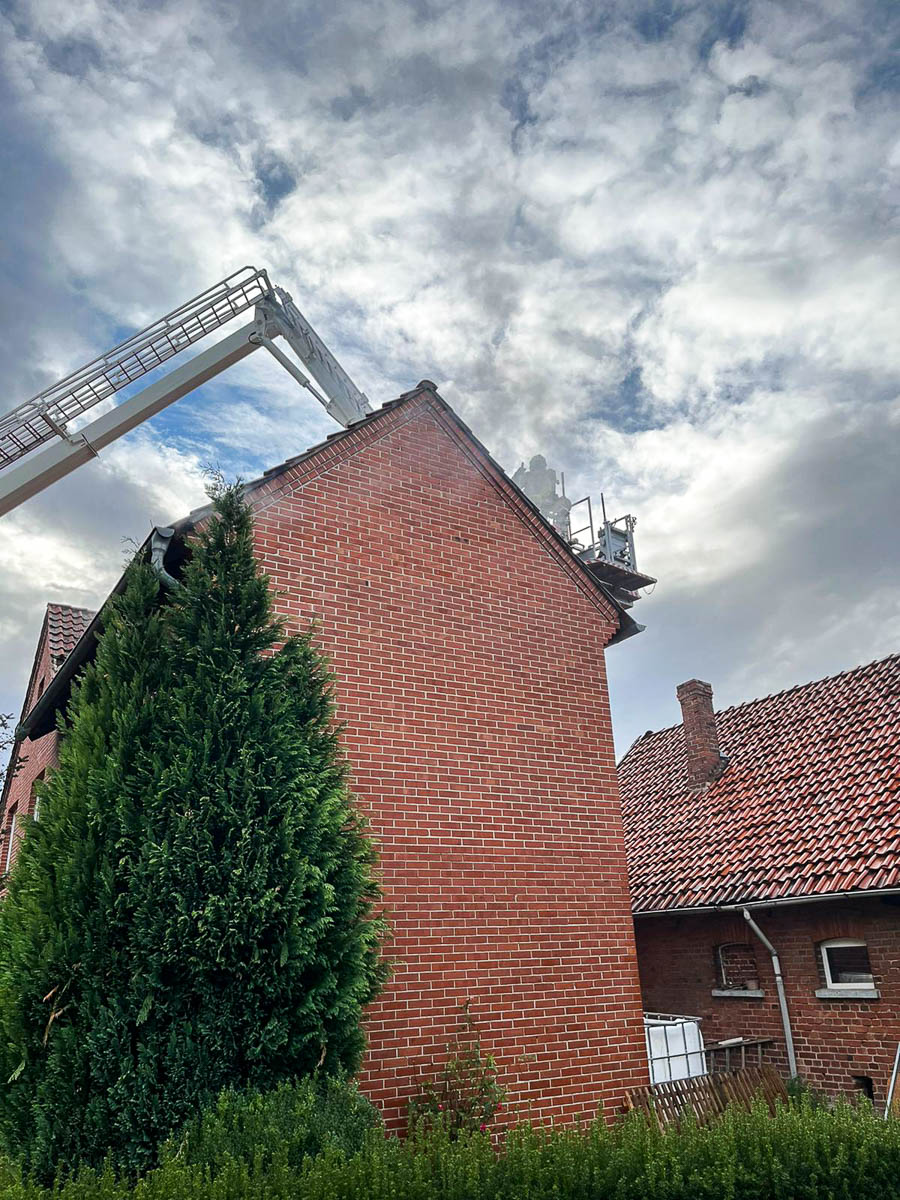 Die ersten Einsatzkräfte konnten einen starken Brandgeruch und eine Rauchentwicklung im Dachbereich eines Hauses bestätigen. Umgehend wurde mit einer Brandbekämpfung begonnen und eine Wasserversorgung aufgebaut.