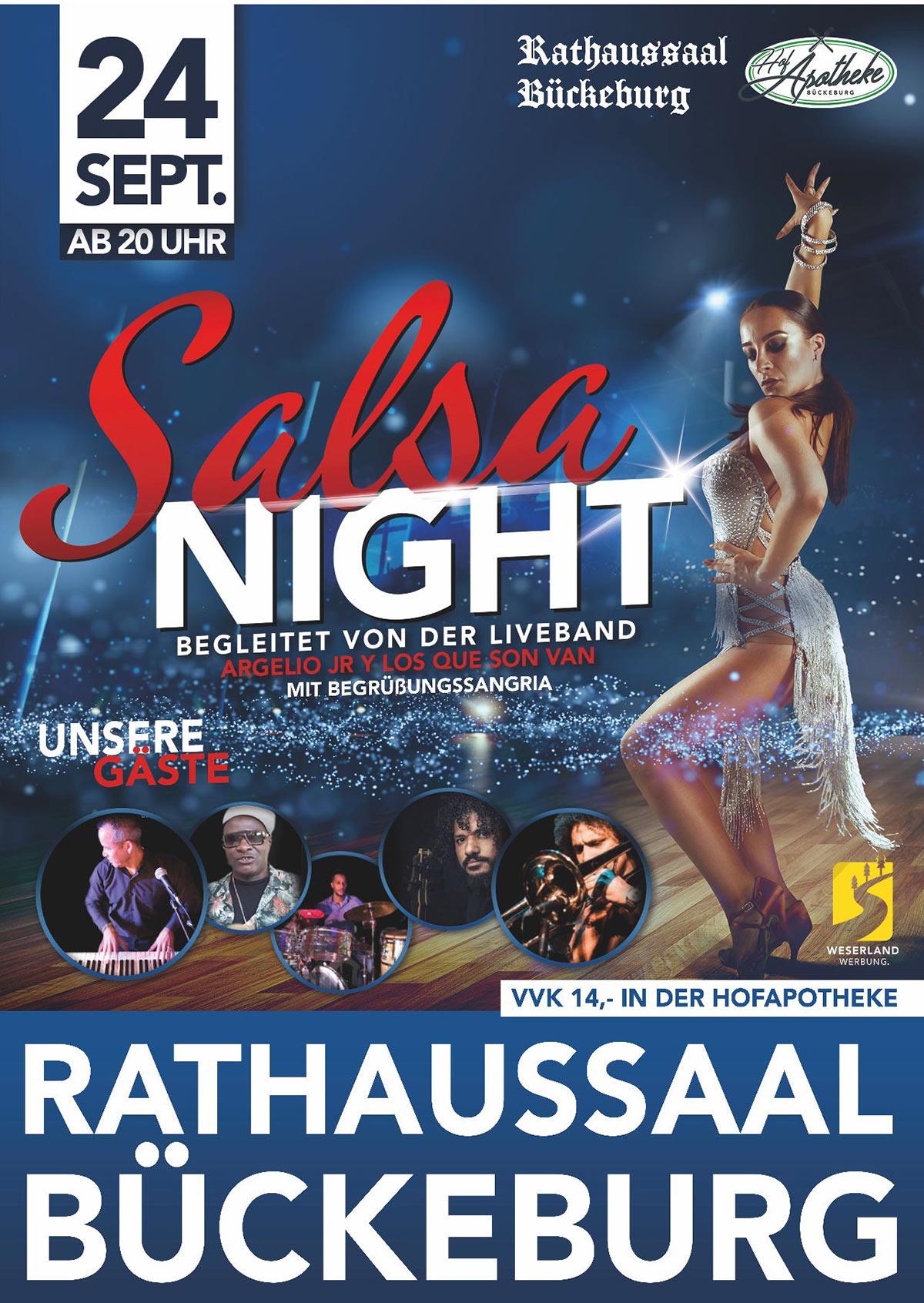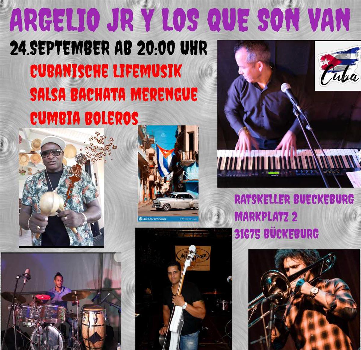 (Bückeburg) „Hola! Euch erwartet die wohl heißeste Nacht des Jahres mit der kubanischen Liveband „Argelio jr y los que son van“ mit richtig guter Salsa-Musik, Bachata und anderen leidenschaftlichen Rhythmen“, kündigt Ratskeller-Pächterin Jennifer Mohme-Xhata an.