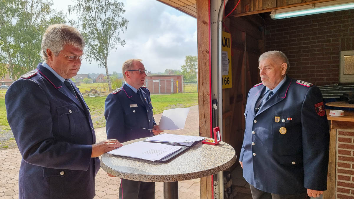 Gerd Kotzuschkewitz für 60-jährige Mitgliedschaft in der Feuerwehr Auhagen/Düdinghausen geehrt
