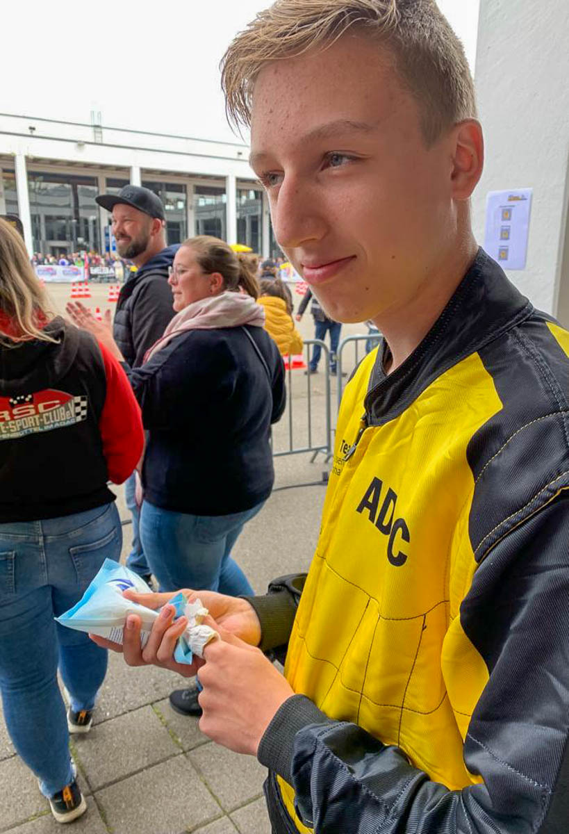 Sitzprobe, Streckenbegehungen, anfeuern der Teamkollegen in den fünf Starterklassen gehörte wie immer dazu. Aber der Wespenstich bei Timo Greth vor seinen Fahrrunden war nicht geplant. Das erhöhte dann die Anspannung, da seine K5 auch am Sonnabend die ersten Fahrer waren.