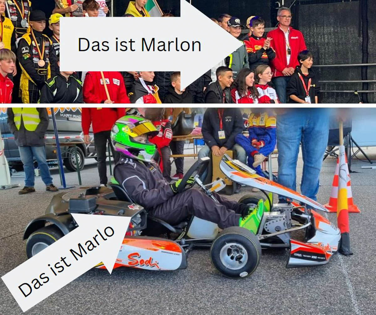 Bei Marlon Harms waren es nicht die Pylonen, mit denen er zu kämpfen hatte, sondern die ungewohnten Karts. Er ärgerte sich, dass er ein paarmal vom Gas gerutscht ist. Trotzdem waren alle seine Runden fehlerfrei. „Die Gegner waren echt harte Brocken. Ich möchte nächstes Jahr weiter vorn landen“, war sein Resümee nach der Veranstaltung. Platz 25 der 37 Jugendlichen lautete sein Endergebnis. „Es war schon eine große Ehre, dass Marlon an der Meisterschaft teilnehmen konnte. Und mit der GT Masters war es noch ein besonderes Highlight. Besonders der Besuch in der Box von Schubert Motorsport war für Marlon sehr beeindruckend“, erzählte Mutter Stefanie.