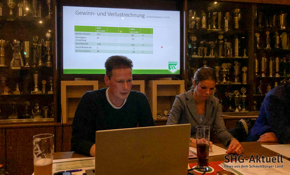 Heiner Rösener, Vizepräsident Finanzen, teilte einen deutlichen Rückgang der Einnahmen aufgrund weniger Mitgliederbeiträgen mit, im Zweckbetrieb konnten wiederum Kostenersparnisse verzeichnet werden, sodass das ein positives Vereinsergebnis von 38.000 Euro in 2021 erzielt werden konnte. „Ein gutes Ergebnis, aber auch ein Rückschritt, weil im Vorjahr kaum Kosten angefallen sind“, erläutert Rösener. Weiter informierte er über den bundesweiten, durchschnittlichen Mitgliederschwund bei Sportvereinen von 3,5 Prozent. „Das sieht niemand gern, der das Vereinsleben liebt“, so ein Urteil.