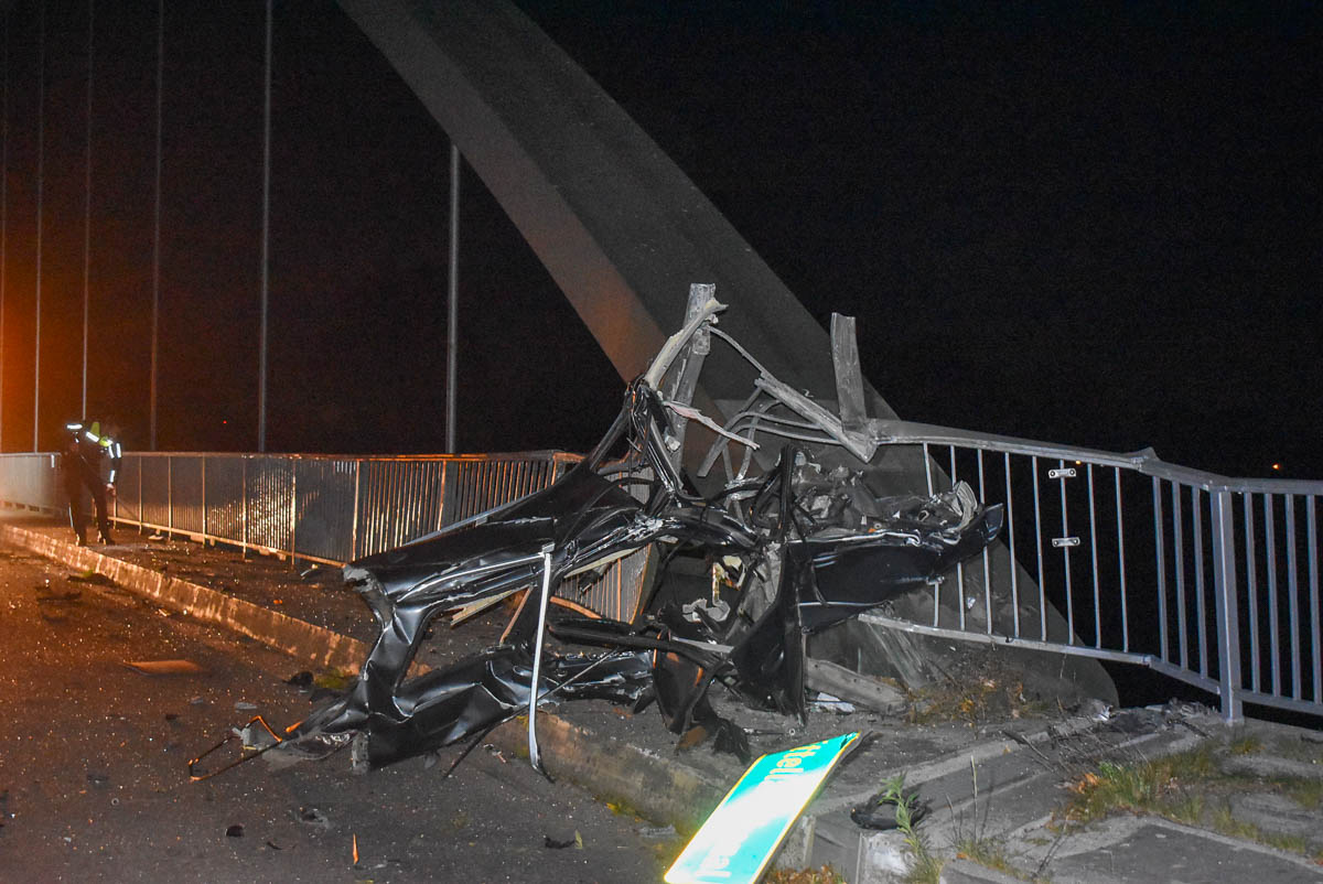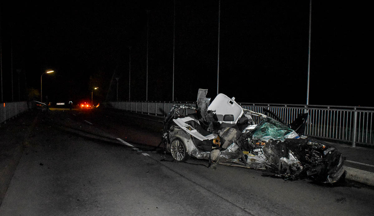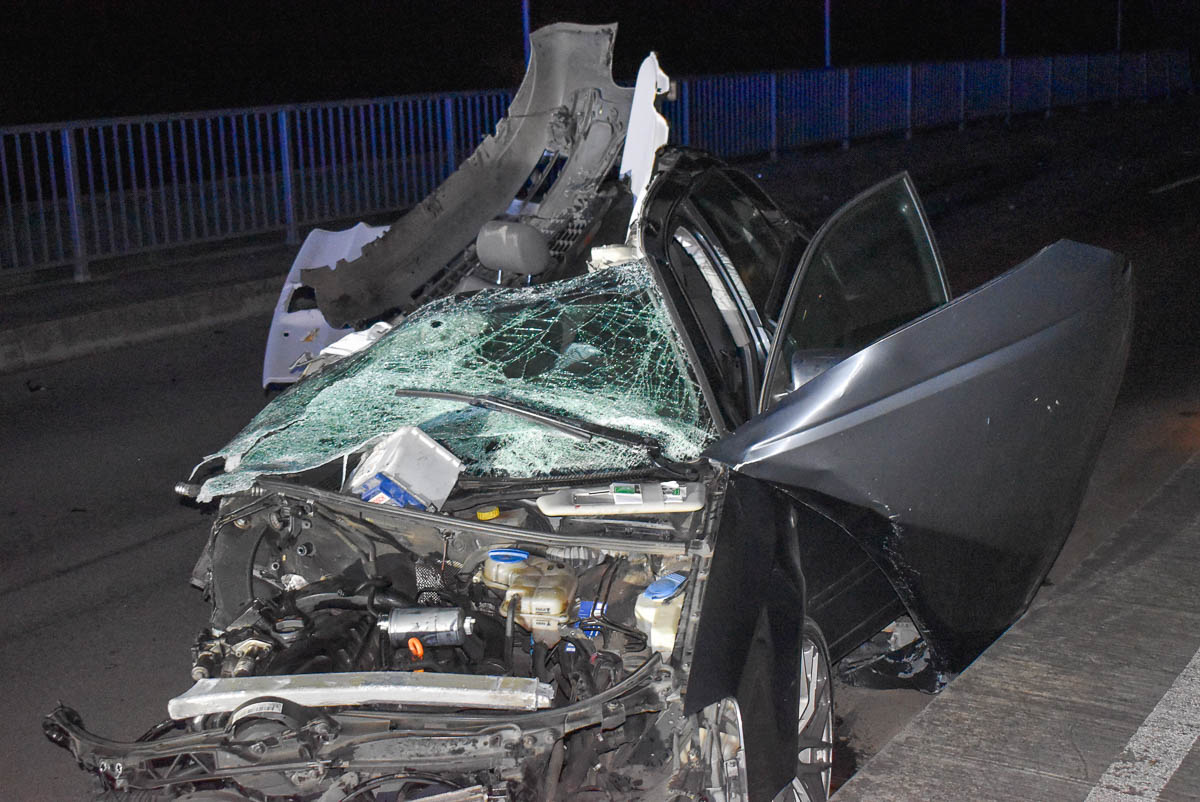 Durch den Anprall an die Brücke wurden Teile der rechten Fahrzeugseite und des Fahrzeugdachs bzw. der rechte Vorderreifen abgerissen. Der PKW kam nach weiteren ca. 40 Metern auf der Gegenfahrbahn der Brücke zum Stehen.