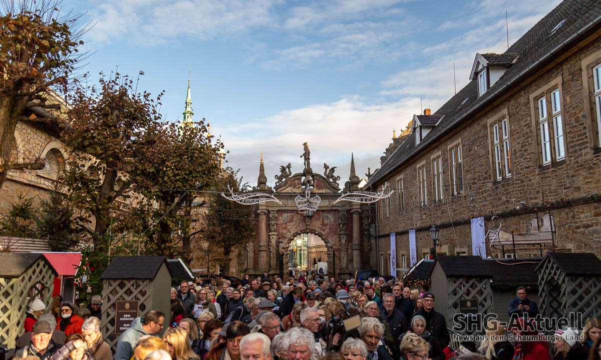 (Bückeburg) Der diesjährige Weihnachtszauber auf Schloss Bückeburg ist eröffnet. Im Rahmen eines Festaktes durchschnitt Alexander Fürst zu Schaumburg-Lippe am Donnerstagvormittag das blau-weiß-rote Band am Einlass und hieß die Gäste zur 19. Veranstaltung ihrer Art herzlich willkommen.