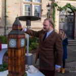 Erst durchschnitt Fürst Alexander das symbolische Band am Eingang, anschließend zerschnitt er den Glockenturm von „Big Ben“. Zuerst verlor das Wahrzeichen seine Spitze, dann wurde das Uhrwerk zerteilt.
