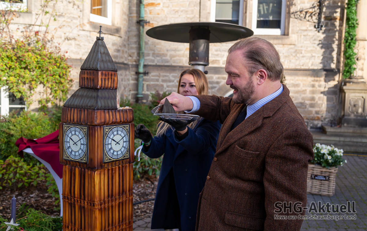 „Die Vorfreude auf die Bescherung dauert manchmal eine Viertelstunde, manchmal eine, zwei oder drei Stunden. Aber auf diese Bescherung haben wir uns zwei Jahre lang gefreut“, sagte der Schlossherr. Die Gründe für die zweijährige Abstinenz sind bekannt, die Corona-Maßnahmen verhagelten den Planern nahezu sämtliche Veranstaltungen. Davon war auch der traditionelle Weihnachtszauber auf Schloss Bückeburg betroffen. „Die schweren Zeiten sind hoffentlich hinter uns und wir können uns an den Dingen erfreuen, die das Leben schön und lebenswert machen“, so der Gastgeber.