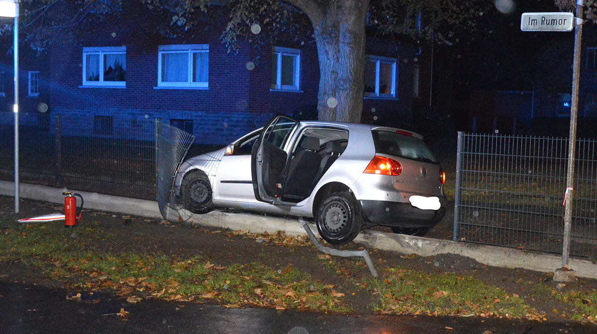 Fahrbahn abgekommen und in einen Grundstückszaun geschleudert.