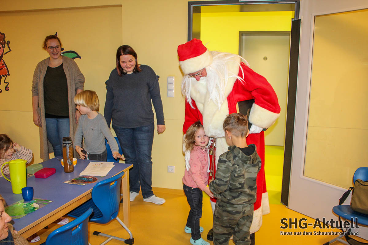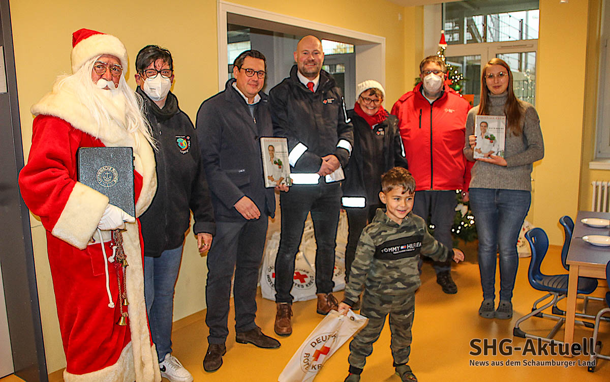 Um genau zu sein, 250 Tüten haben die Ehrenamtlichen um Ortsvereinsvorsitzenden Sven Lampe im Gepäck. Gefüllt sind die Tüten unter anderem mit Bastelmaterialien, einen Playmobil-DRKler, einem Pixie-Buch zur Ersten Hilfe, Kreide und natürlich einem Schokoladennikolaus. Wie bereits im vergangenen Jahr wird diese Aktion, in diesem Jahr bei vier Kindergärten, finanziert über die Versteigerungen via United Charity, bei denen das DRK regelmäßig gespendete Raritäten Prominenter für den guten Zweck veräußert. Zudem wurde dieses Projekt in diesem Jahr mit einer Westfalen-Weser-Energie-Förderung über 700 Euro bedacht. So durften sich ebenfalls die Kinder der Julianen-Kita Hinüberstraße, der Kita Straußweg sowie des Waldkindergartens über eine festliche Bescherung freuen. Auch Bürgermeister Axel Wohlgemuth ließ es sich nicht nehmen, der Weihnachtsaktion beizuwohnen.