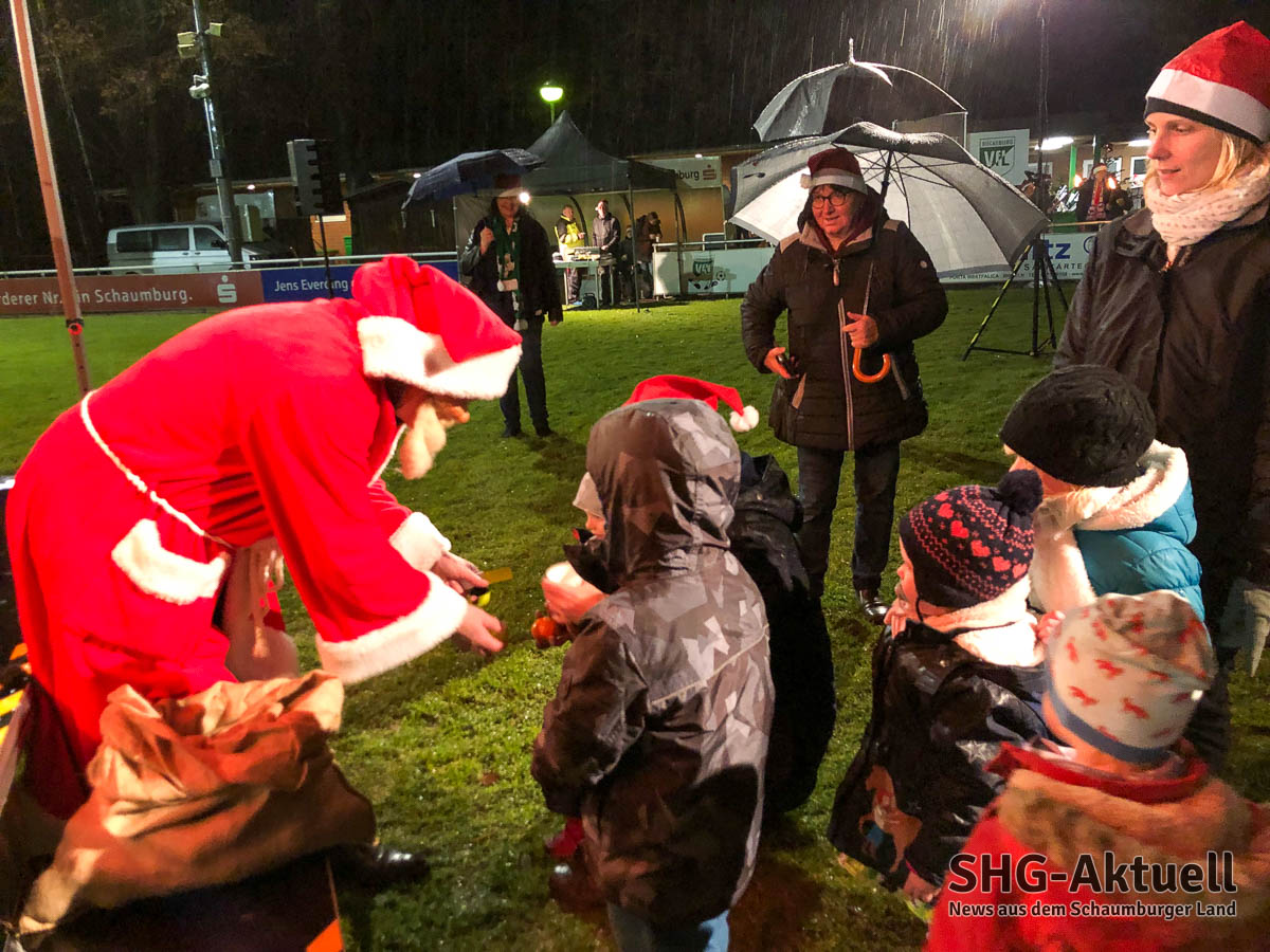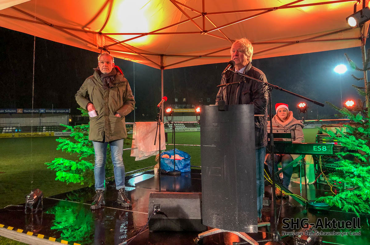Zum Wetter hingegen hatte Manzke bereits Stoßgebete zum Himmel geschickt und konnte so – nach eigener Aussage – von einem Tornado auf anhaltenden Nieselregen runterhandeln. „Petrus ist dann doch mehr katholisch“, scherzte der Landesbischof. VfL-Präsident Martin Brandt hob die Möglichkeit des Miteinanders, nach einer Zeit voller Einschränkungen, hervor: „Gerade an Weihnachten ist der Wunsch nach Geselligkeit stark ausgeprägt, daher freue ich mich über alle Gäste und das gemeinsame Pflegen einer guten Tradition am Vorabend der Heiligen Nacht.“