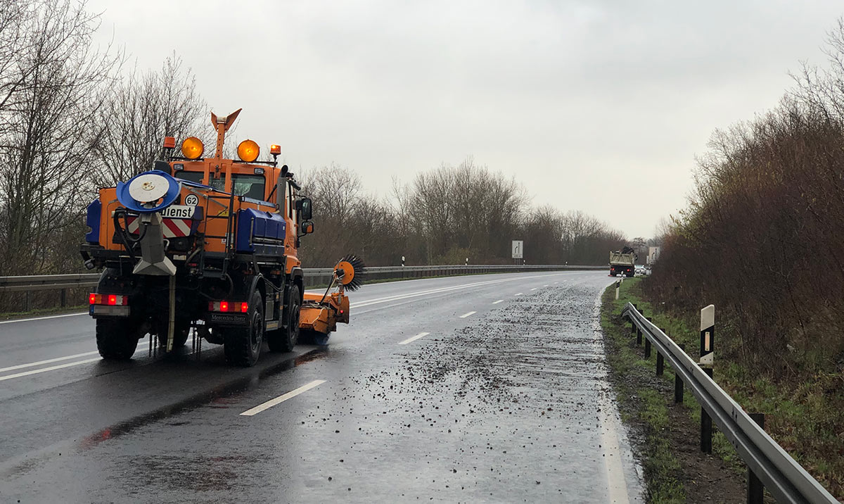 Zurzeit kommt es in dem Bundesstraßenbereich durch Säuberungsmaßnahmen der Straßenmeisterei zu Verkehrsbeeinträchtigungen. (po)